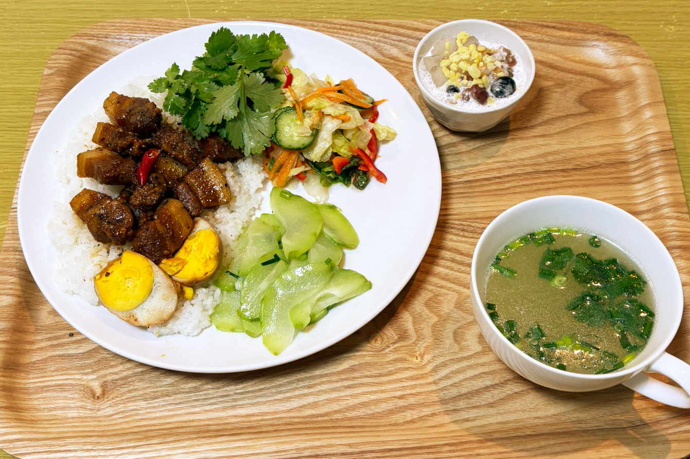 焼肉のせビーフン / 海鮮炒飯 / 焼肉ご飯 / 海鮮焼きそば / チキンカレー / タピオカ粉水餃子 / つけ麺 / 豚の角煮 / 鶏肉レモングラス炒め / 牛肉混ぜビーフン / 焼き春雨 / おこわ etc